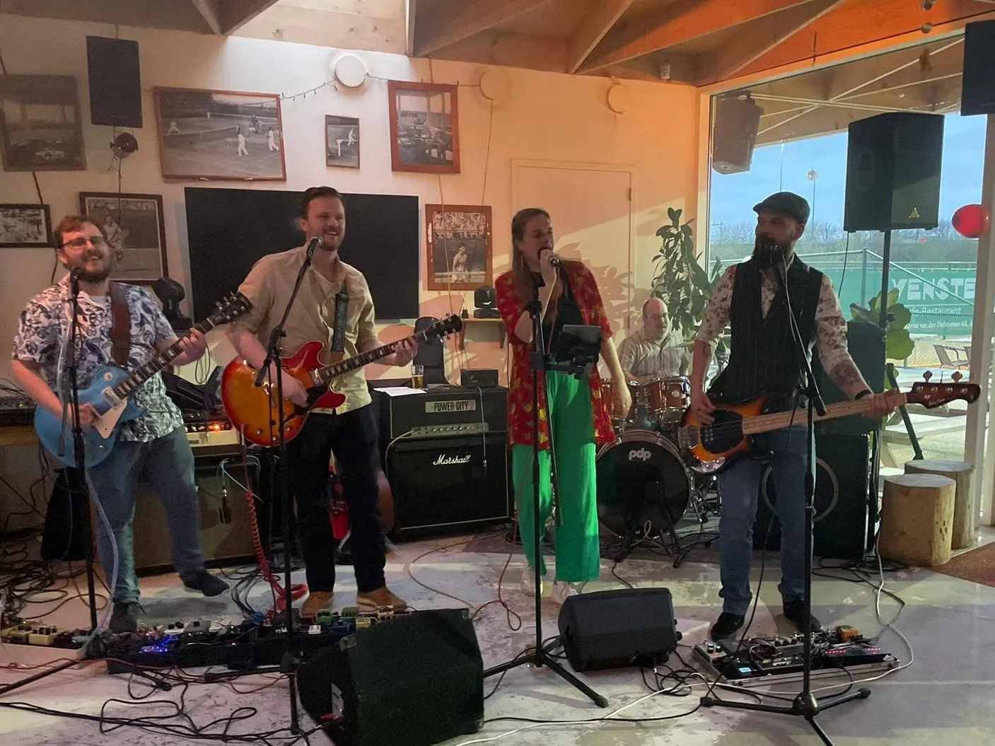 We zijn een echte band en nemen ruimte in beslag. Het absolute minimum is 5 meter breed en 3 meter diep, maar liever wat meer ruimte voor een optimale opstelling en sfeer. We bespreken de ruimte graag vooraf met je om te zorgen dat alles past.